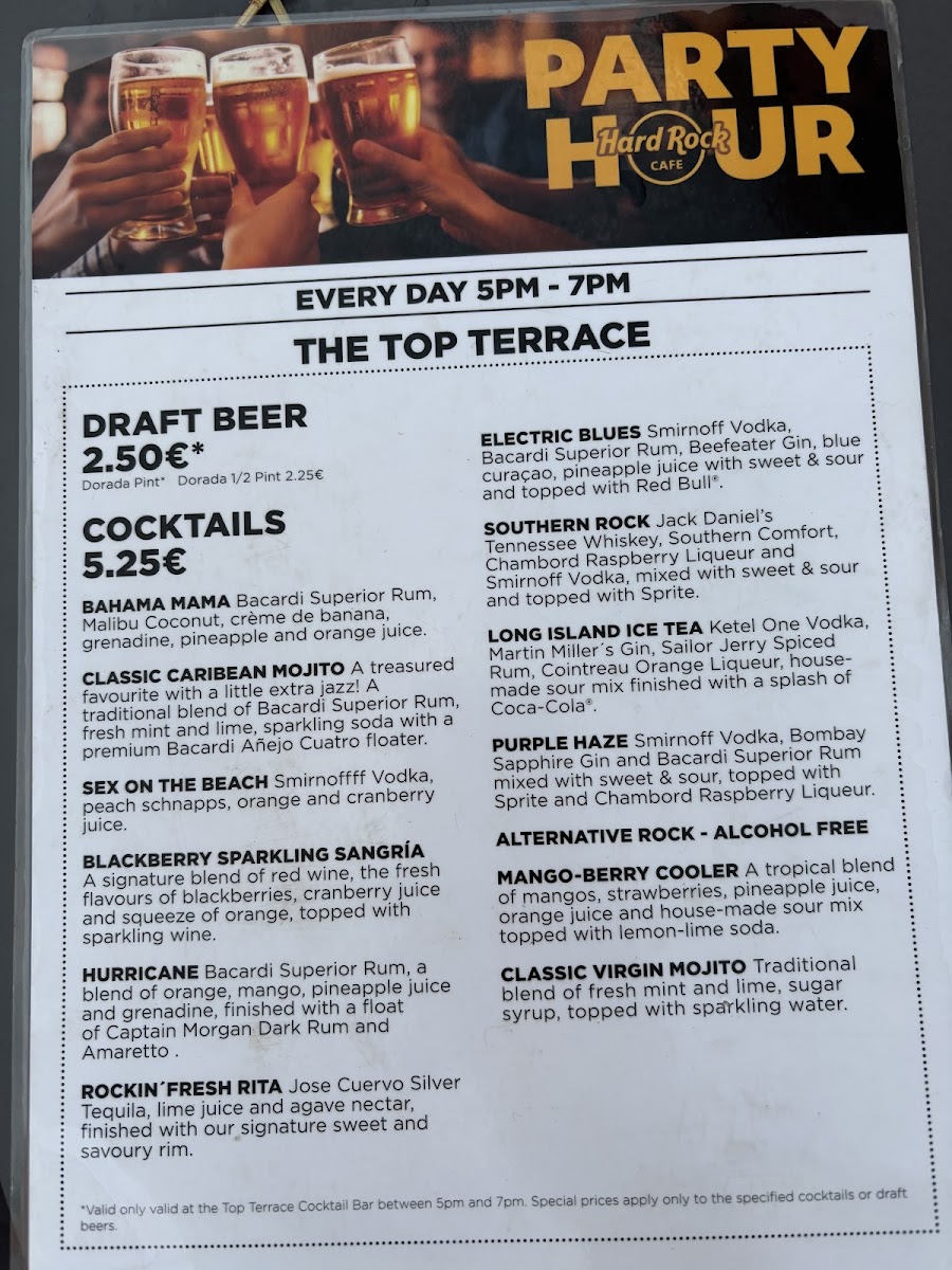 Customers appreciate the attentive and friendly service, creating an enjoyable dining experience. The ambiance is lively, adorned with rock memorabilia and great music, making it the perfect spot for dining enthusiasts and music lovers alike. Whether you're seeking a fun night out or a memorable meal, the Hard Rock Cafe is a must-visit destination in Tenerife.